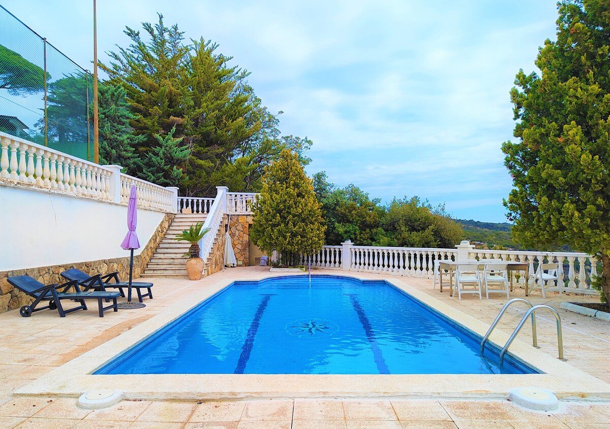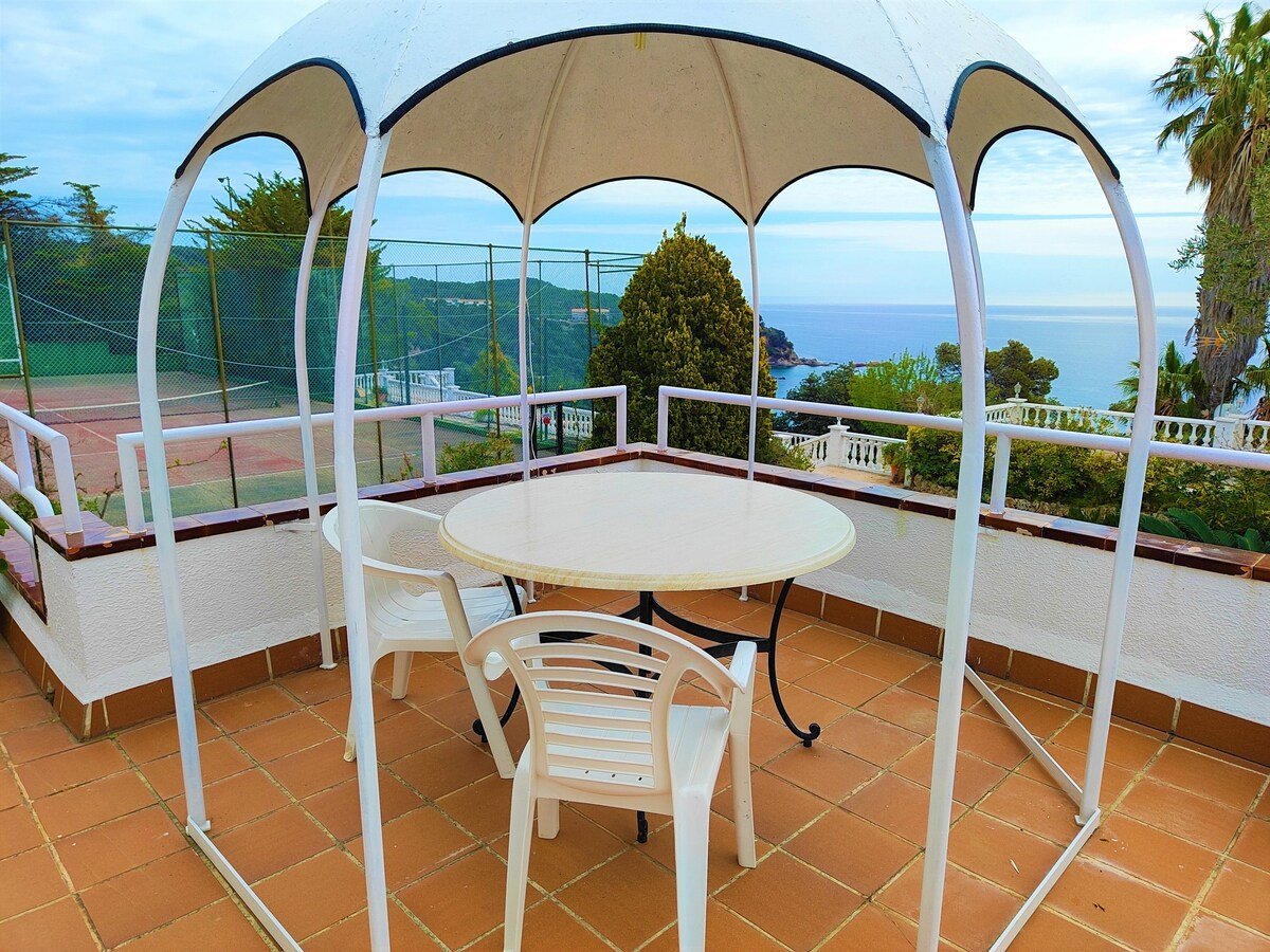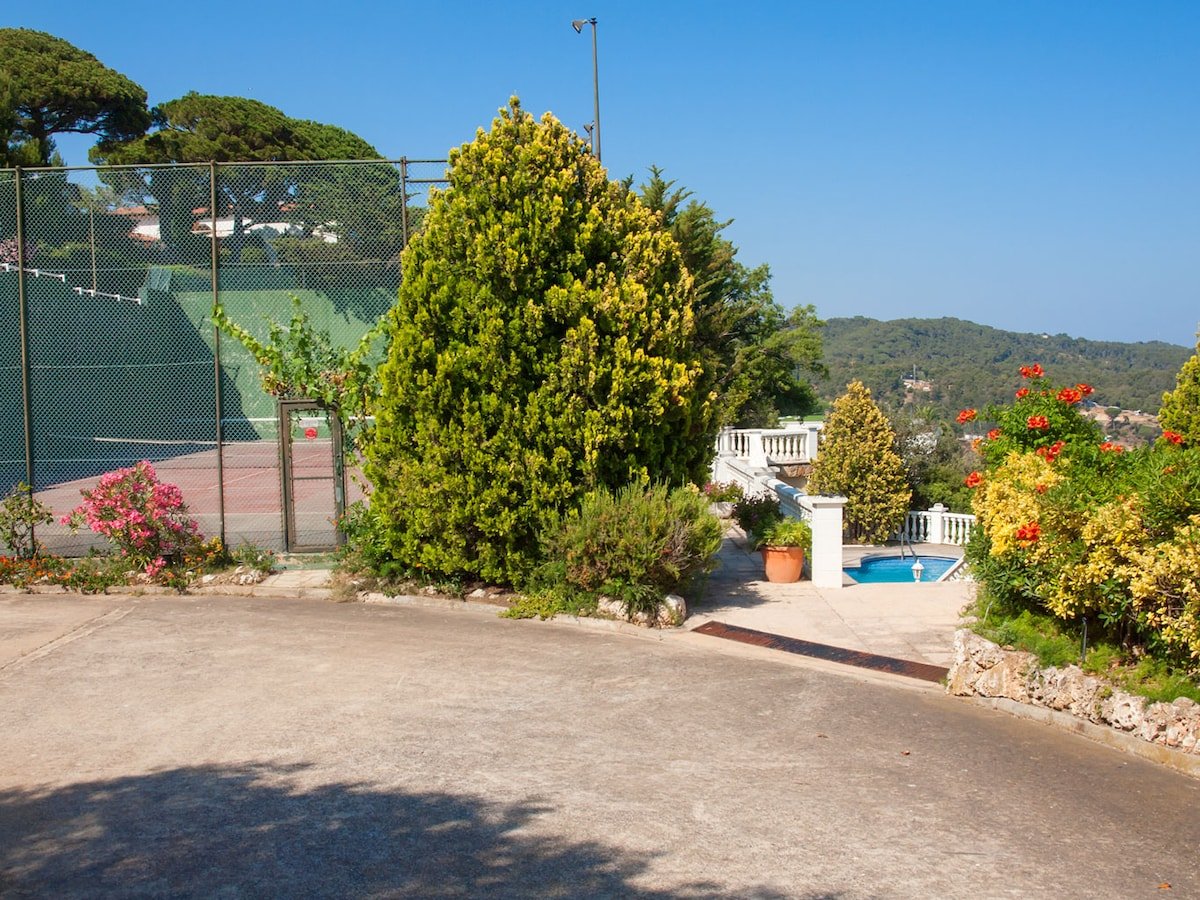 Awesome holiday home with incredible views situated in a very quiet neightborhood 6km. from Tossa de Mar. It has 3 bedrooms, a large living room, a bathroom and kitchen. The plot has a private pool, tennis court and garden with barbacue and direct views to one of the best beaches in Costa Brava.